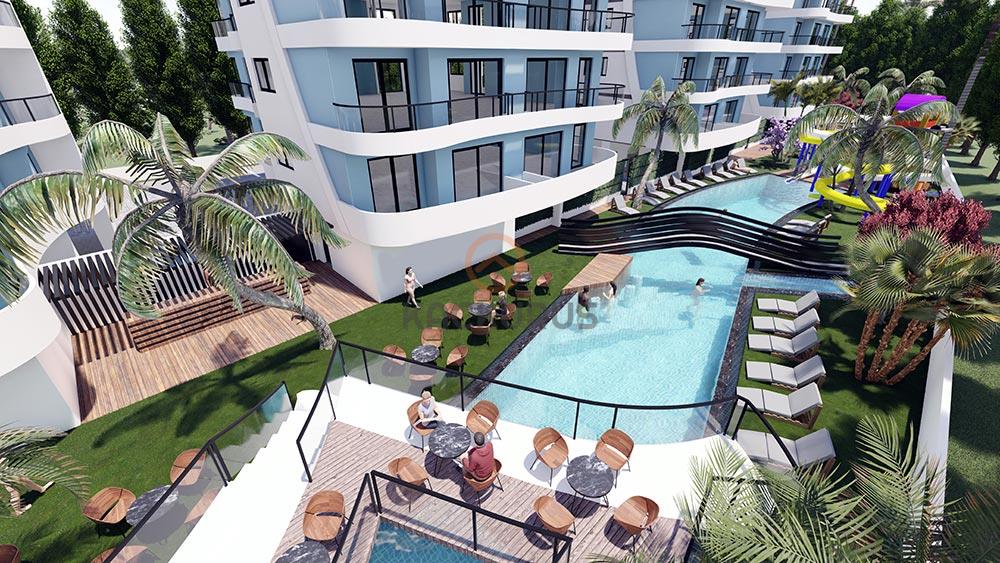 6 blok içinde yer alan bu satılık dairenin havuzunda dinlenebilir, aquaparkında eğlenebilir, SPA'da yenilenebilir, spor salonunda formda kalabilir, güzellik salonunda kendinizi şımartabilirsiniz.