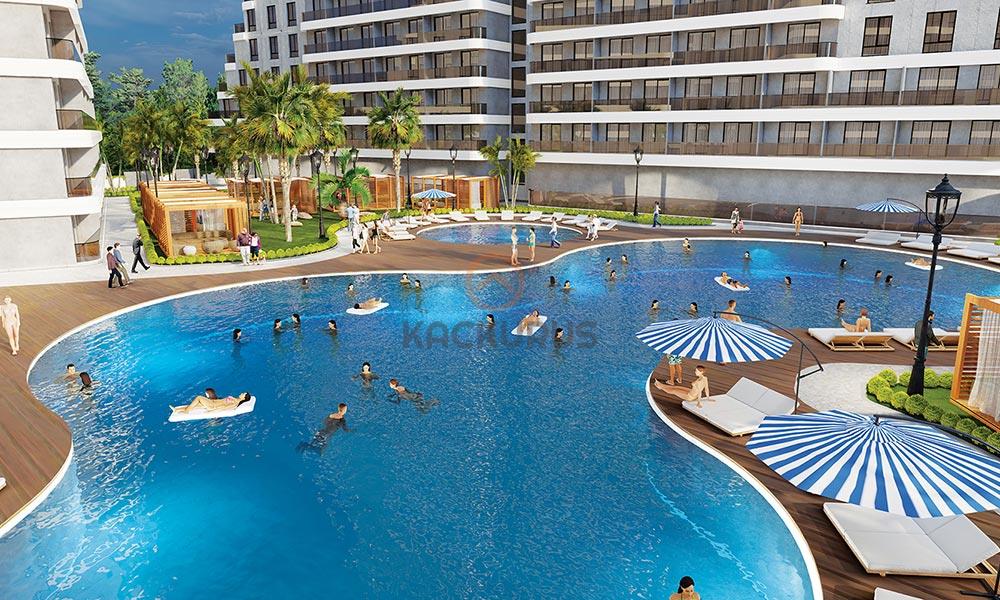 Located just 1 km from the coast, Geçitkale offers great advantages in terms of transportation and investment. The project features apartment options of studios, 1+1, 2+1, and 3+1, attracting attention with its modern architecture and spacious living areas.