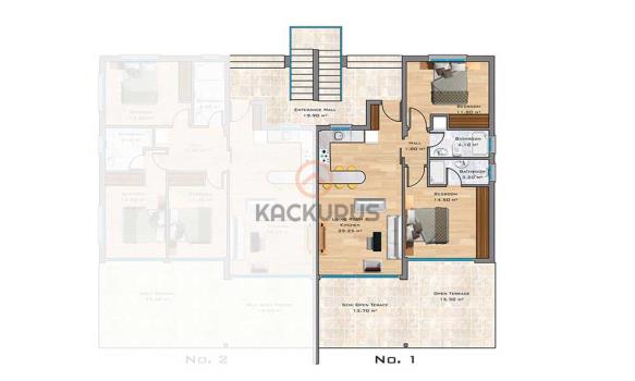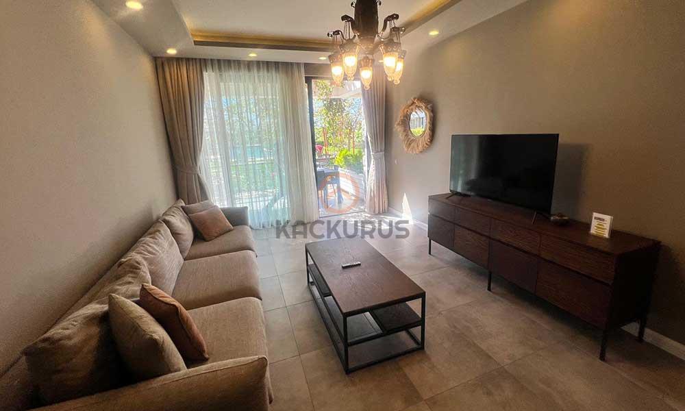 Our 2+1 Garden Floor Apartment is 104m2 and has panoramic views of both the Beş Parmak Mountains and the Mediterranean, offering an unobstructed view to the north towards the Mediterranean.