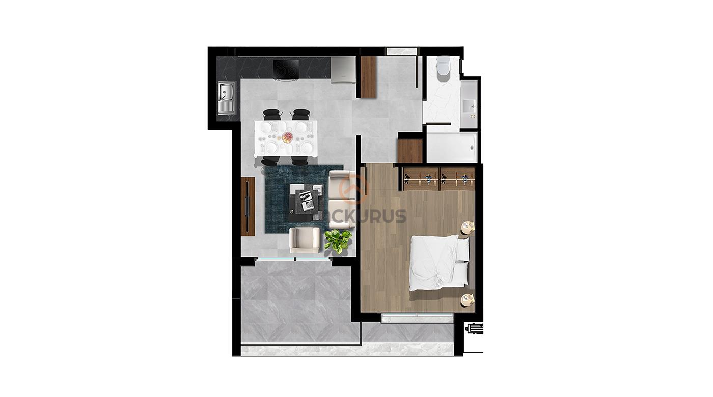 1+1 RESIDENCE APARTMENT FOR SALE INTERIOR PLAN AND FEATURES