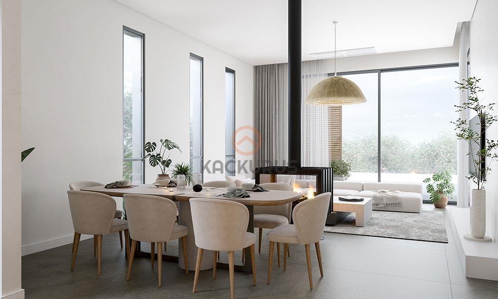 An elegant life embracing nature! Our project in Ozanköy, hosting some of the most enchanting views of Girne, consists of 24 villas surrounded by lush greenery. Designed as a modern interpretation of Mediterranean architecture with a refined use of natural materials, it enriches every moment of life with spacious interiors and airy terraces.