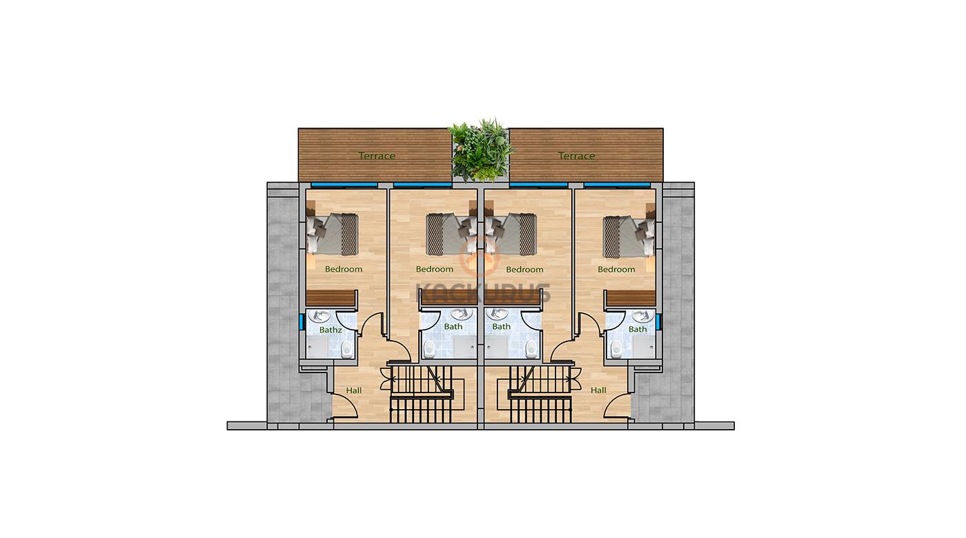 With its modern exterior design, these buildings combine elegance and functionality in the interior spaces, offering a unique villa concept in Girne.