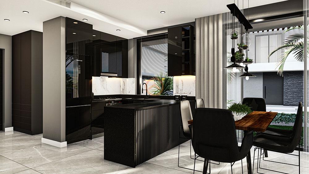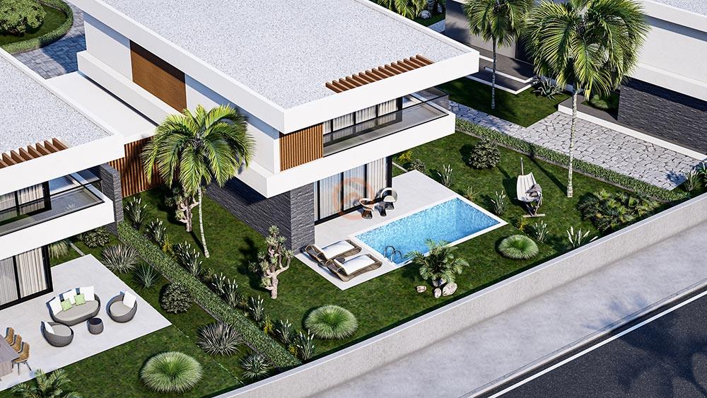Our luxury villa for sale is 3+1, with 182m2 of indoor space, a 20m2 closed garage, and a 230m2 garden area.