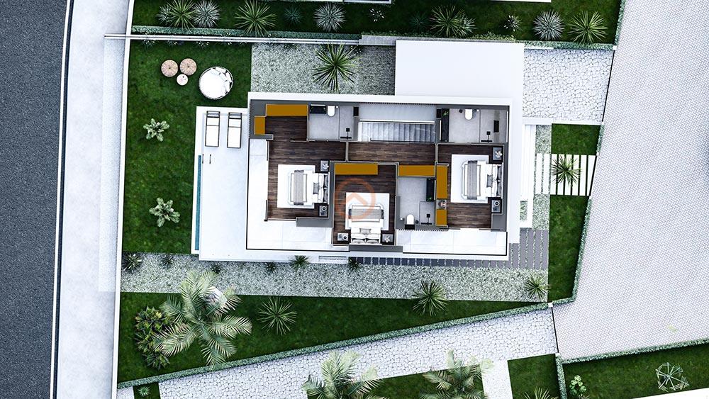 The villa has 3 bedrooms, all with en-suite bathrooms. A private pool can be built upon request.