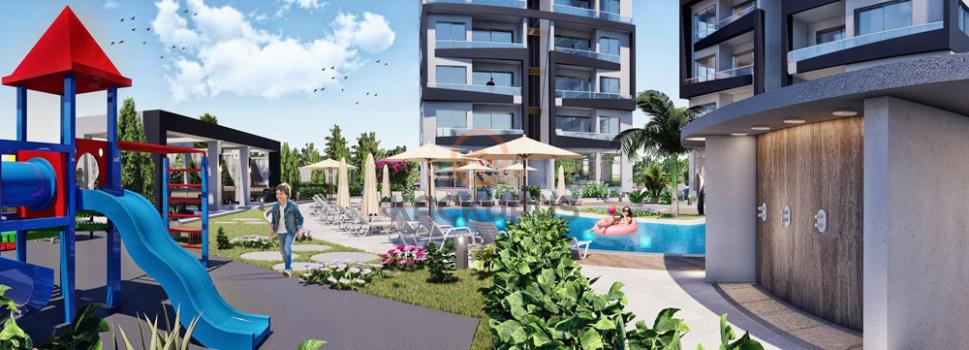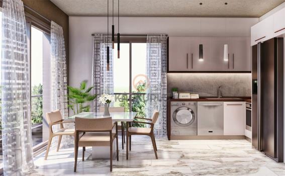 In Iskele, within walking distance to the beach, a modern luxury 1+1, 64 m² apartment is available for sale fully furnished, with a campaign offer valid until May 20, 2025.