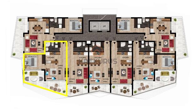 Attracting attention with its unique architecture and position overlooking the unparalleled Mediterranean view from every apartment, the luxury site’s 76m2 1+1 apartment for sale is only 550 meters walking distance from Long Beach, the island’s longest and most popular coastline with golden sands and clear sea. Our apartment features a 22m2 balcony.