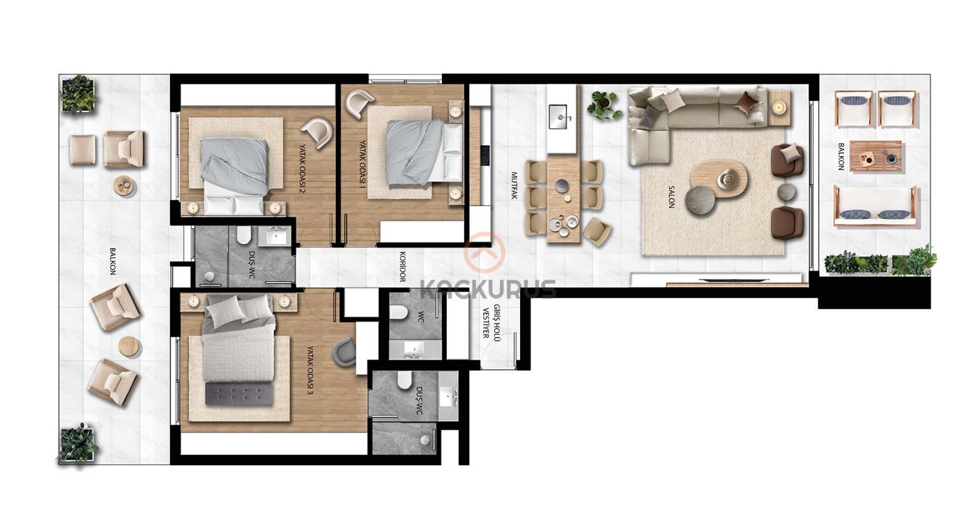 This exclusive project located in İskele, a rapidly appreciating area of Northern Cyprus, offers premium living standards with its modern architecture, spacious social areas, and high investment potential.
