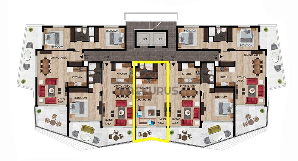 The luxury site with a total of 416 residences features numerous social activity areas. In addition to the luxury hotel offering flawless service quality, the SPA center with Turkish bath services is a great alternative for you and your guests.