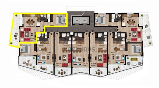 In our luxury complex that integrates with the stunning beauty and view of İskele's famous Long Beach, reserve your place now in our 6th-floor 1+1, 78m2 apartment for sale.
