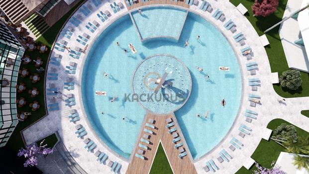 On an area of 2.5 hectares, with different options including studio, 1+1, 2+1 apartments, and 3+1 suites, totaling 416 residences, the social facilities of our project prioritize impeccable service quality; hotel, resting and walking areas, aqua park, 4 different pools including 2 for children, gym to integrate your daily life with health and sports, 2 restaurants including one a la carte, pool bar and terrace bar, multipurpose amphitheater hosting various activities, parking at every block, mini golf and multipurpose fields, children’s playground, market, souvenir shop and ATM areas, 24-hour camera security system and security personnel, beauty salon, indoor swimming pool, jacuzzi, sauna, massage room and a SPA center offering Turkish bath services for guests who want to relax.