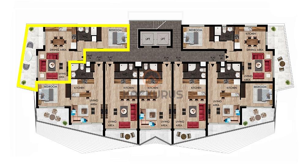 En el sitio de lujo que se fusiona con la impresionante belleza y vista de la famosa playa Long Beach en İskele, asegure su lugar ahora en nuestro apartamento 1+1 de 78 m2 en el piso 12.