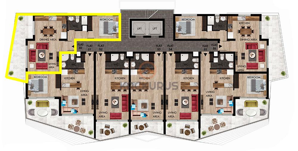 Nell’esclusivo complesso che si fonde con la bellezza della celebre Long Beach di İskele, prenota ora il tuo appartamento 1+1 di lusso, 78 m2 in vendita.