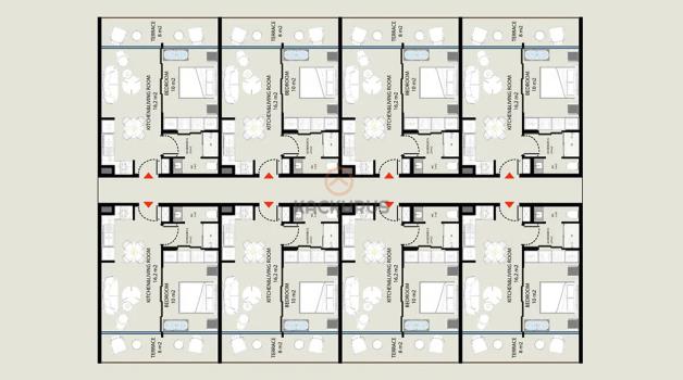 قیمت آپارتمانهای 1+1 طبقه همکف در پروژه بر اساس موقعیت و جهت نما متفاوت است.