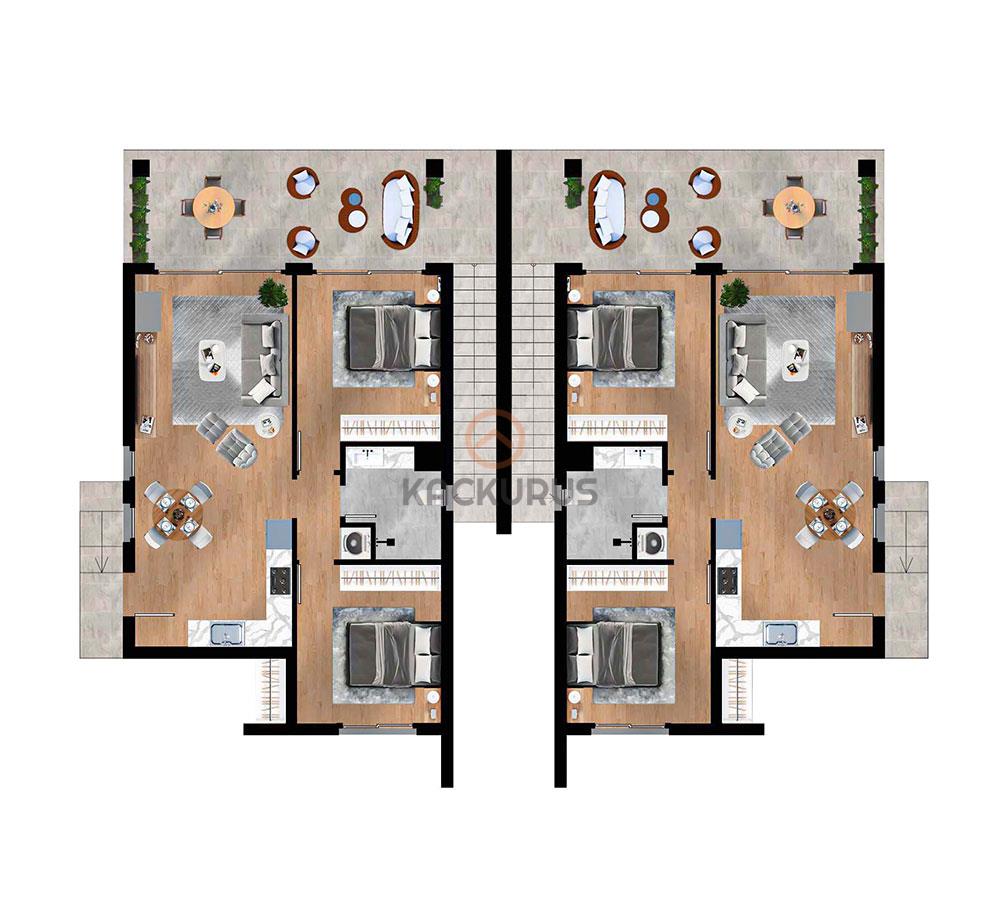 هر واحد در این مجتمع به دقت چیده شده تا این عناصر طبیعی را منعکس کند؛ هر خانه به گونهای طراحی شده که هم آرامش و هم نور خورشید را به داخل بکشد و داستان تعادلی بین زمین و دریا بسازد.