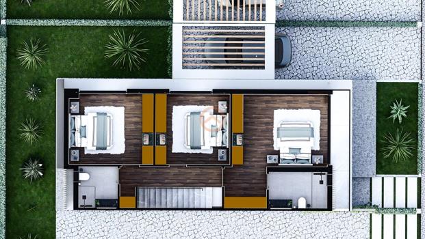 Satılık lüks ikiz villamız 3+1 olup 160.50m2 kapalı alan, 16m2 yarı açık garaj ve 211m2 - 265m2 bahçe alanına sahiptir.