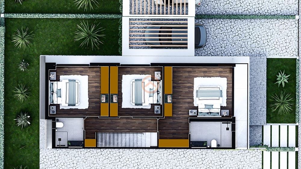 Villada 3 ebeveyn banyolu yatak odası bulunmakta olup, talep üzerine özel havuz yapımı mümkündür.