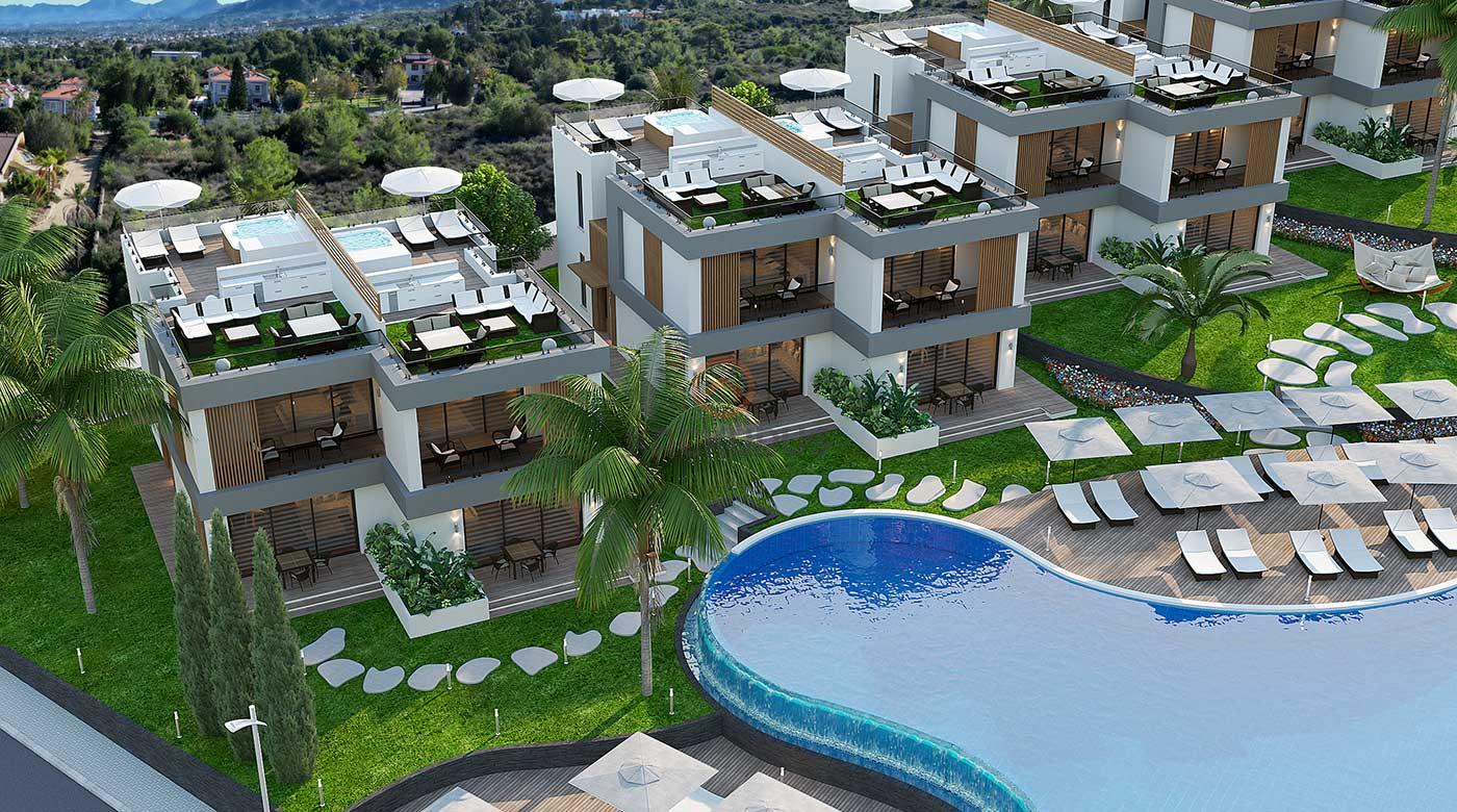 With the slogan "Our project invites you to your own nature," this exclusive living space is located in one of the most prestigious spots in Girne, where the sun meets the sea. Surrounded by natural beauty, this project is meticulously designed to meet all the needs of modern living while offering a peaceful life.
