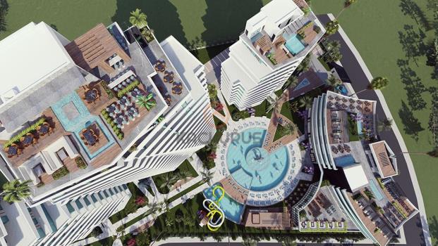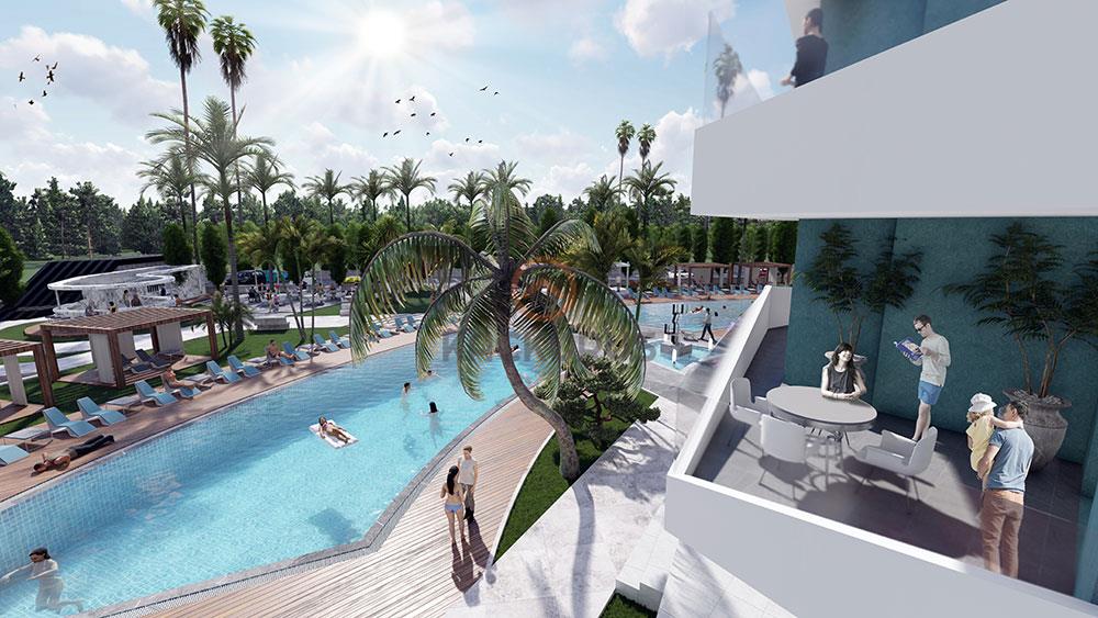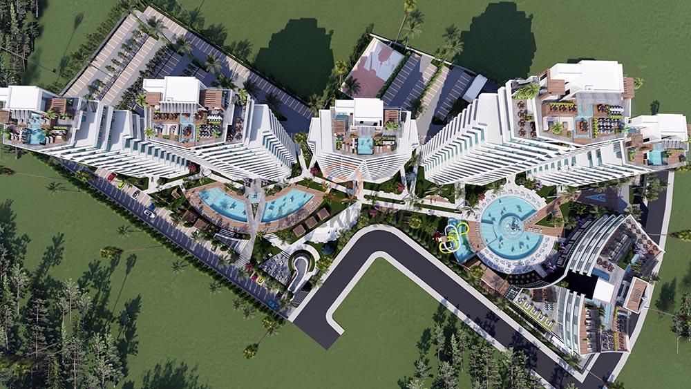 يمتد المشروع على مساحة 2.5 هكتار ويضم 416 وحدة سكنية بأنواع مختلفة تشمل استوديوهات، شقق 1+1، 2+1 وأجنحة 3+1. تشمل المرافق الاجتماعية فندقًا، مناطق استراحة ومسارات للمشي، حديقة مائية، 4 حمامات سباحة منها اثنان للأطفال، صالة رياضية تجمع بين الصحة والرياضة، مطعمان أحدهما أ لا كارت، بار بجانب المسبح وبار على التراس، مدرج متعدد الأغراض لاستضافة الفعاليات، مواقف سيارات لكل مبنى، ملعب جولف صغير، ملاعب متعددة الأغراض، ملعب للأطفال، متجر سوبرماركت، محل للهدايا وأجهزة الصراف الآلي، أمن على مدار الساعة مع كاميرات مراقبة، صالون تجميل، حمام سباحة داخلي، جاكوزي، ساونا، غرف مساج ومركز سبا يضم حمام تركي كخيار للاسترخاء.