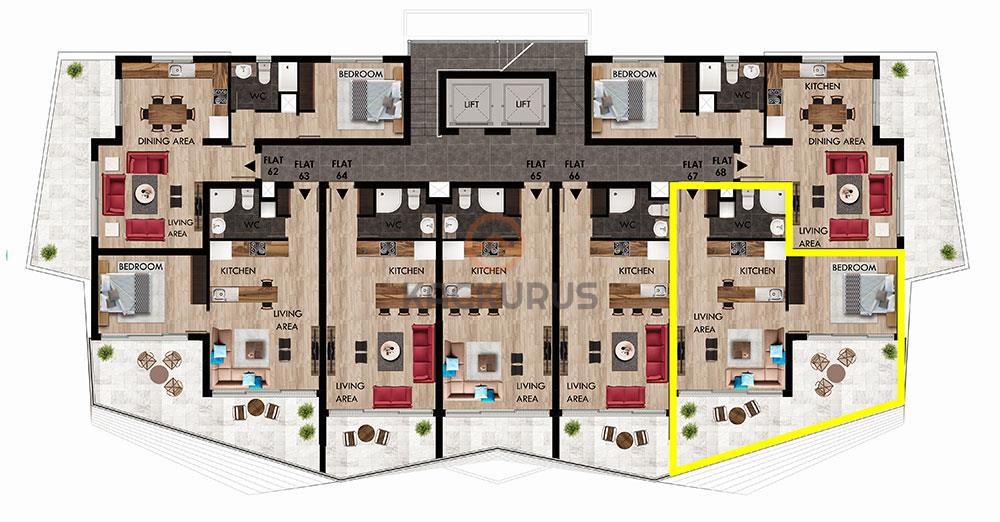 В роскошном комплексе, гармонично сочетающемся с известным пляжем Лонг Бич в Исkele и его великолепной красотой и видом, доступна квартира на 10 этаже 1+1 площадью 66.5 м2. Забронируйте своё место уже сейчас.